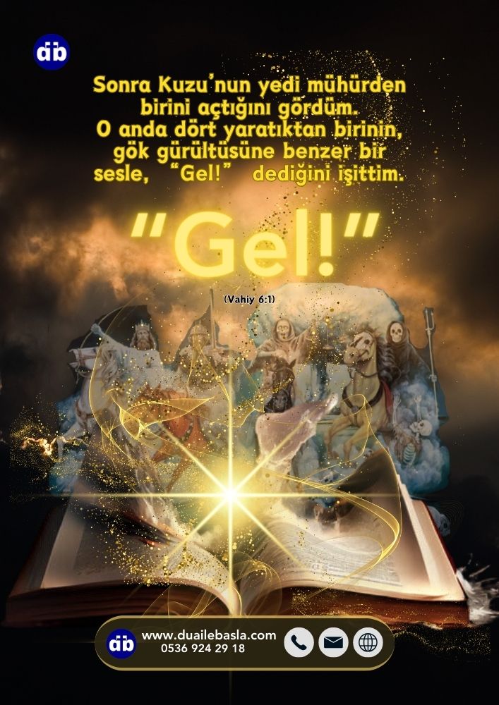 Gök gürültüsüne benzer bir ses, “Gel!” Posted on: 23 Şubat 2024 Last updated on: 14 Şubat 2024 Written by: paulg Comments: 0 Sonra Kuzu’nun yedi mühürden birini açtığını gördüm. O anda dört yaratıktan birinin, gök gürültüsüne benzer bir sesle, “Gel!” dediğini işittim. (Vahiy 6: 1) Skip back to main navigation